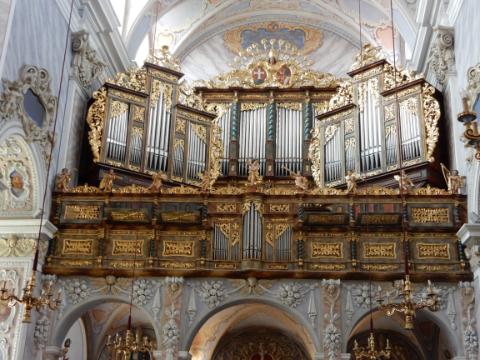 The rear of the church with large pipe organ |