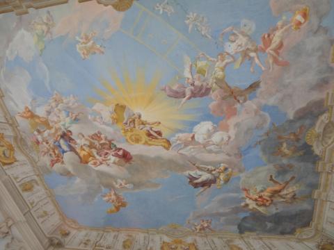Giant ceiling fresco titled "Apotheosis of Charles VI," located above the Emperor's Staircase |